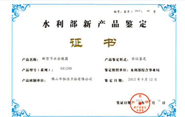 恒潔自主研發的“超旋風”超節水坐便器被評定為“國內領先”節水產品,成為業界首摘此桂冠的產品。