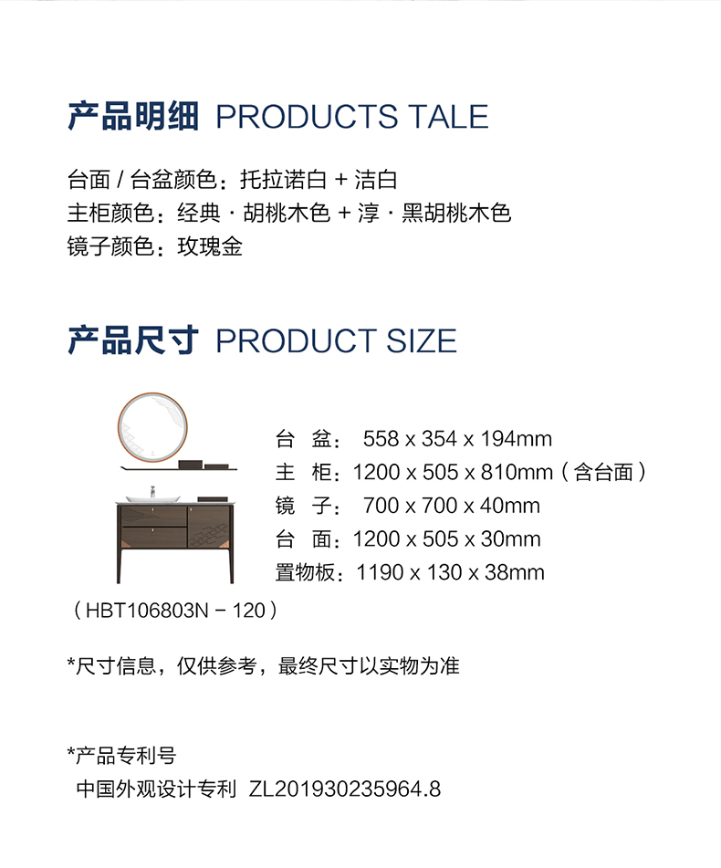 HBT106803N-120 (經(jīng)典胡桃木色)實(shí)木浴室柜