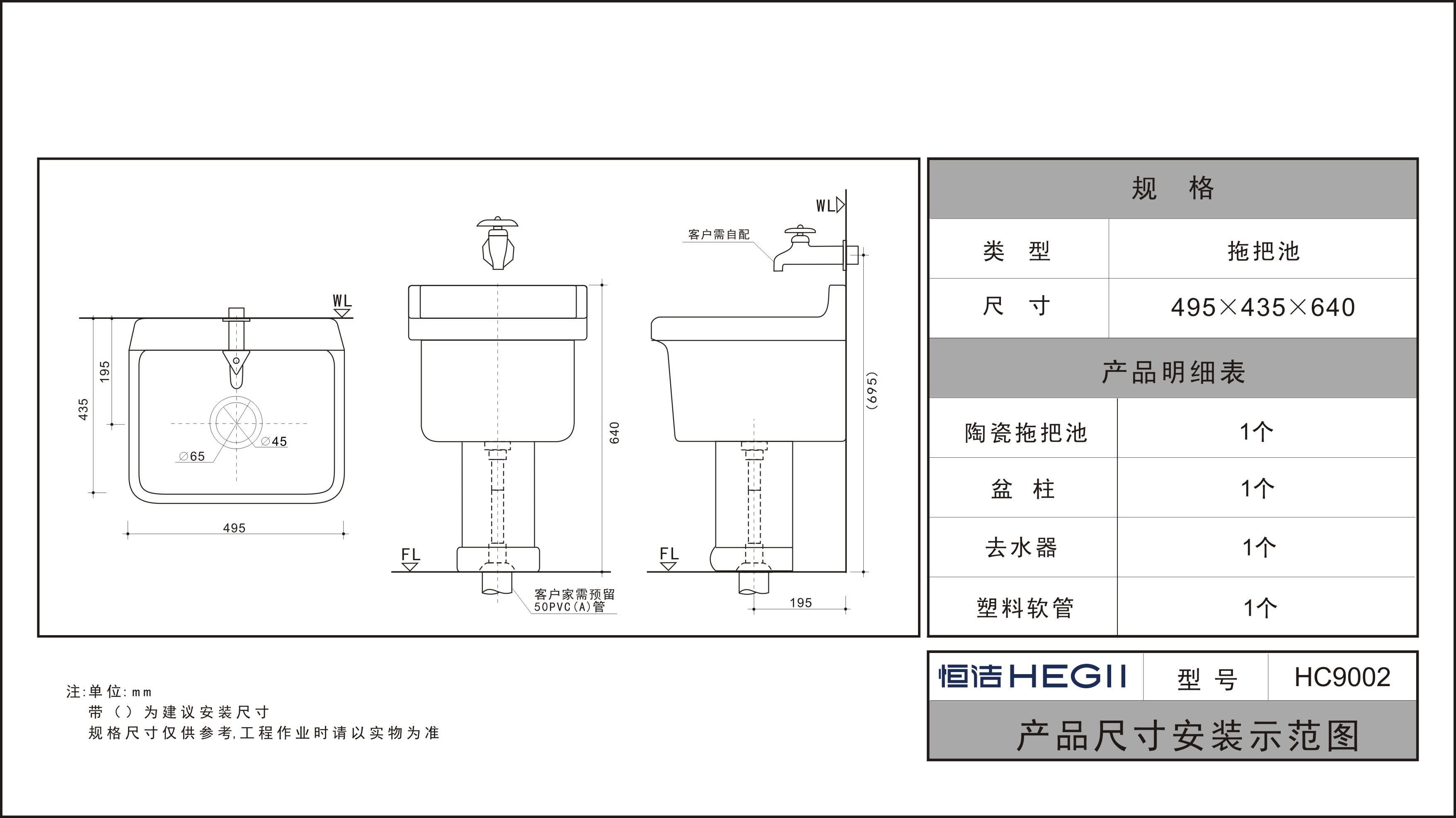 HC9002廚房,陽臺(tái),衛(wèi)浴拖把池