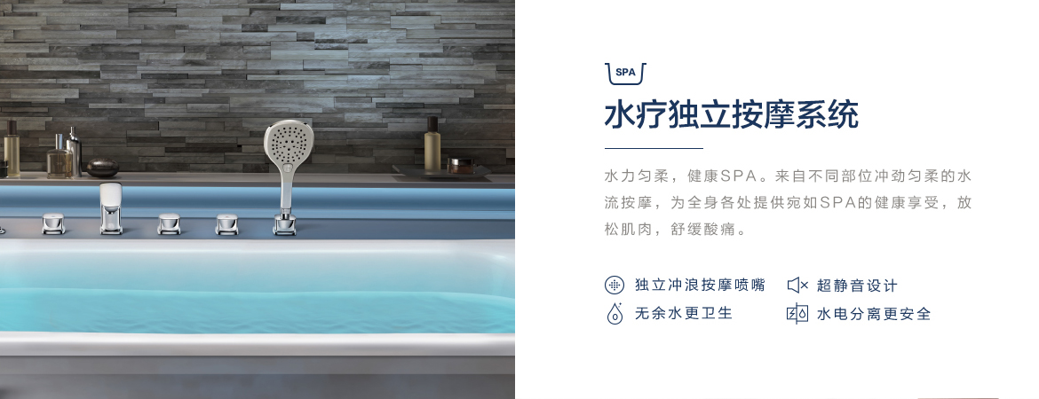 在家也可以享受SPA按摩體驗(yàn),恒潔水悅SPA技術(shù),可提供四種按摩系統(tǒng),